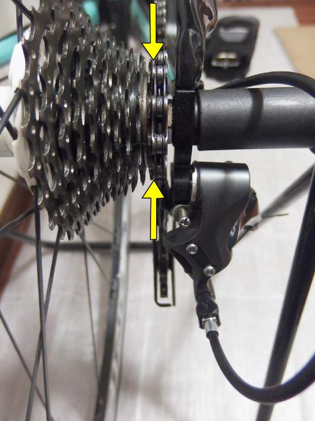 そしてこのクリアランスの少なさがチェーン、スプロケ、リアディレイラーの音鳴の原因です。