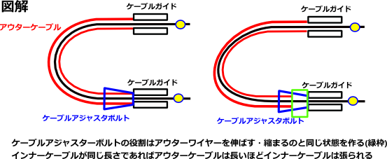 では今回はケーブルアジャストボルトの調整方法の番外編、理解を深めるために
