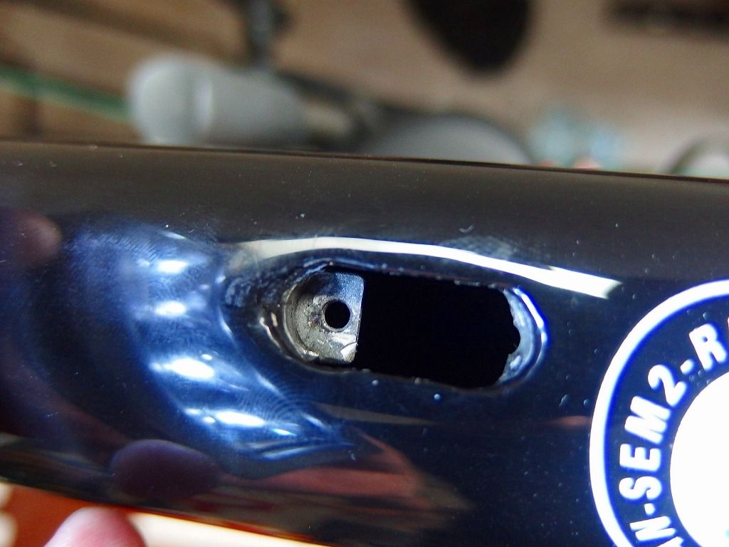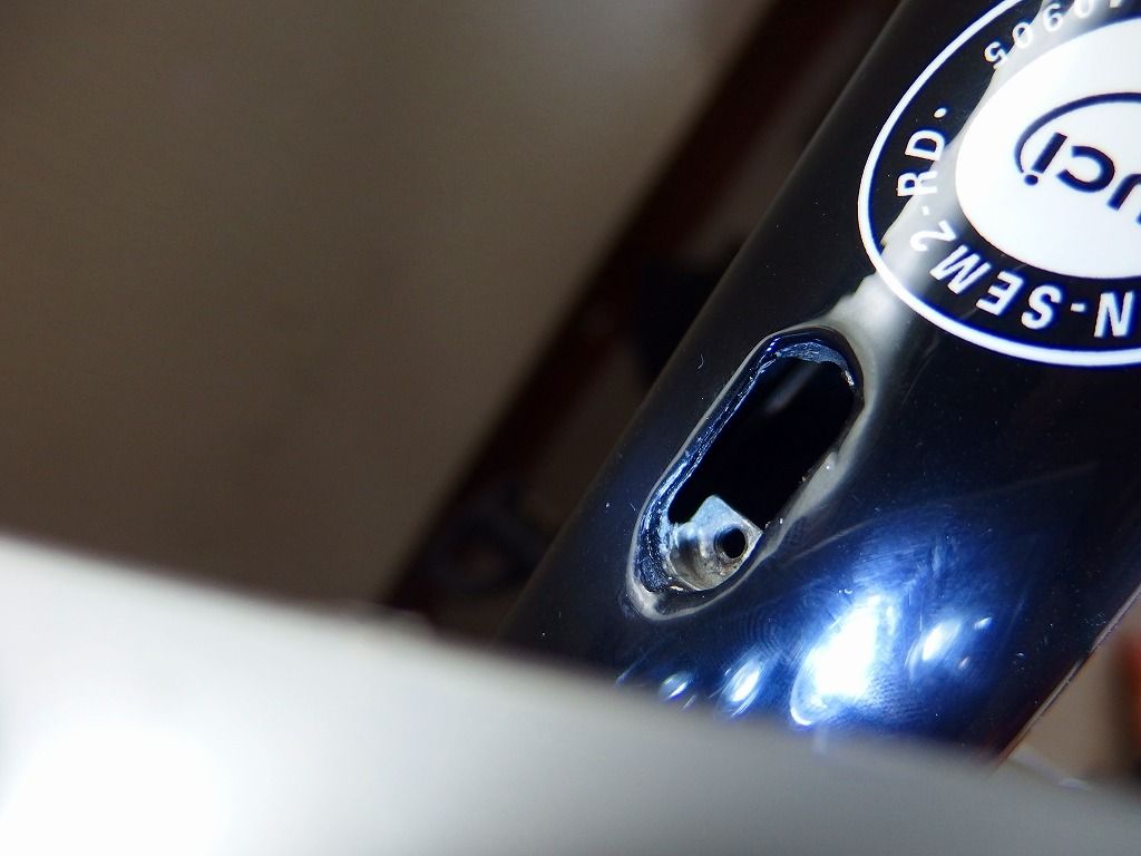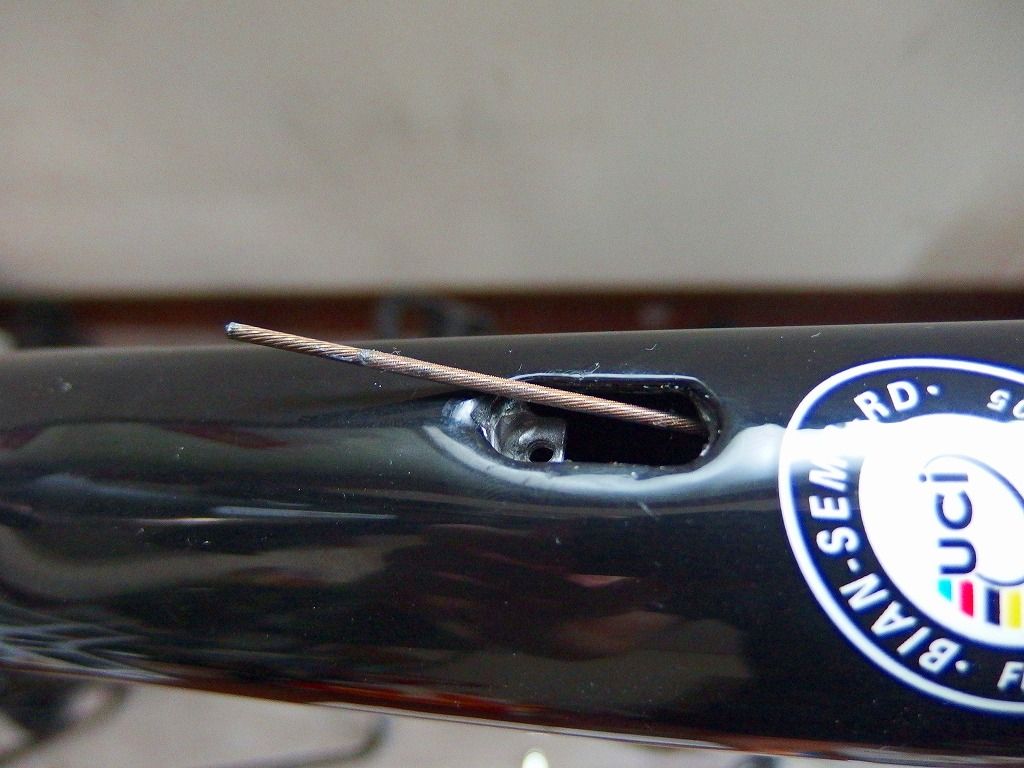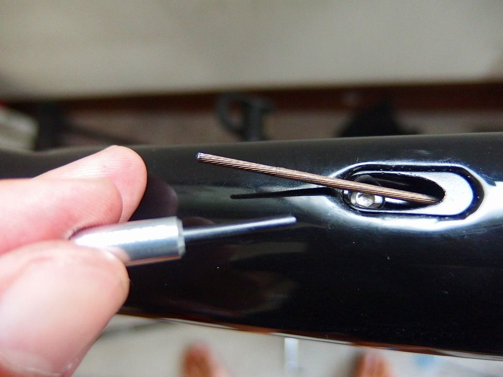 穴を覗きながらインナーケーブルを進めてきます。