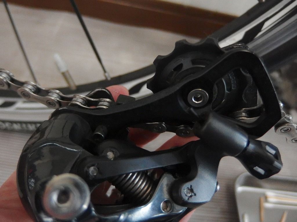 リアディレイラーもスプリングの力が効いています。