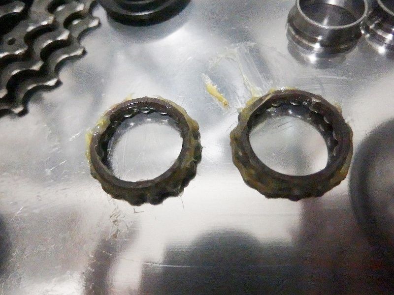 シールが取れれば後はリテーナごとベアリング級を取り出して分解は完了です。