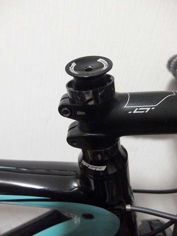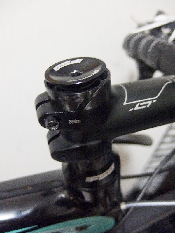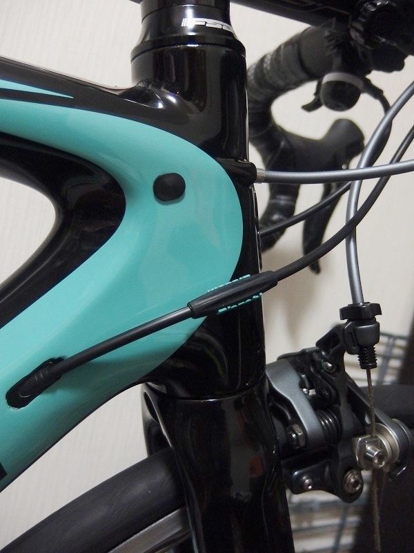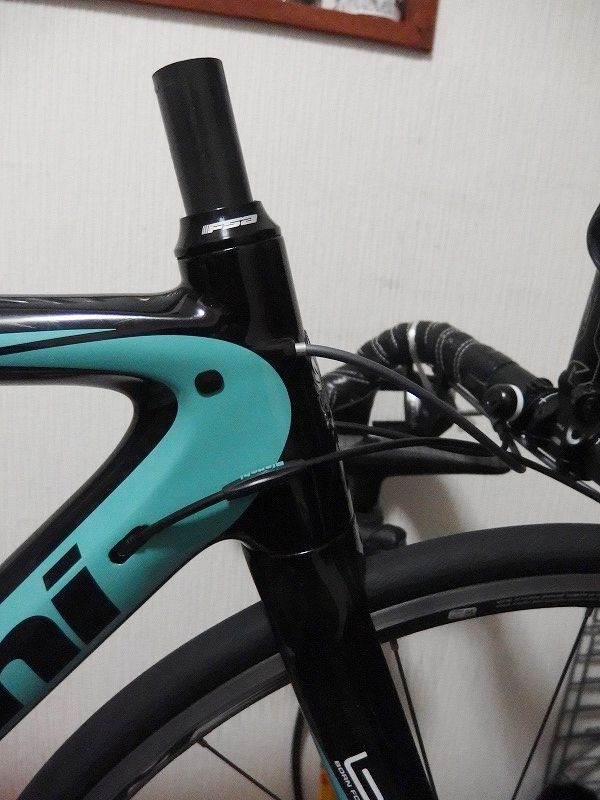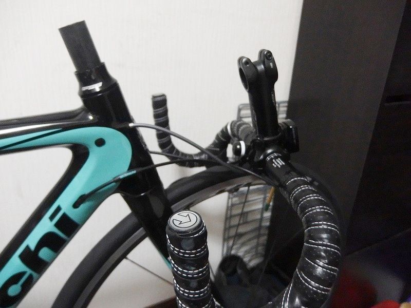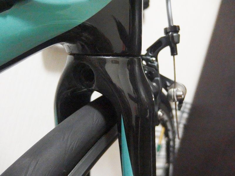 フォークコラム部は美しいカーボン調。、、、調と言うかカーボンですね(笑