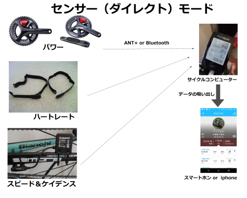 おそらくジャイアントの製品でこの使い方ができるのはジャイアント製品(スピード+ケイデンスセンサー)がANT+とBluetoothを双方使えるからではないかと思います。。