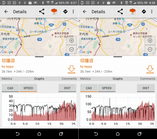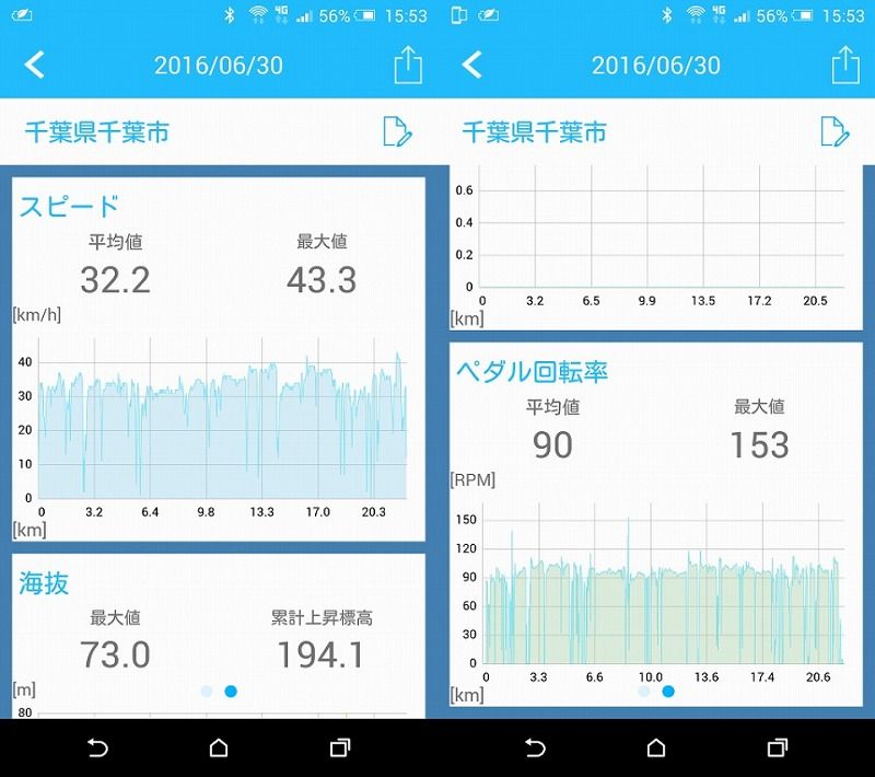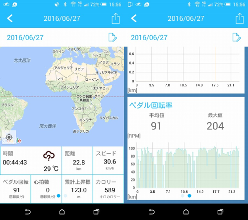 計測はいつも同じアプリ、やサイコンを使って総合的に見ないとデータにばらつきが出て不正確なデータになってしまいます。