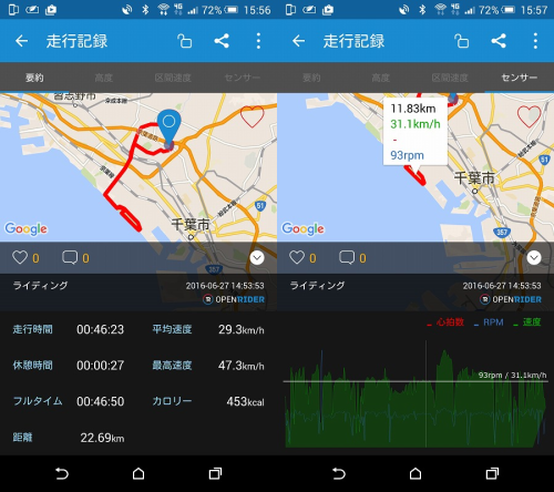 スマホ→Open rider と Ride for GPSをダブルで測定。