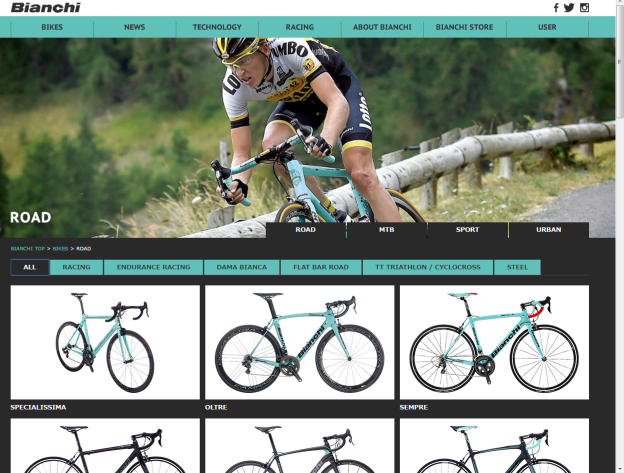 2016 Bianchi公式ページ ロードバイクカテゴリより