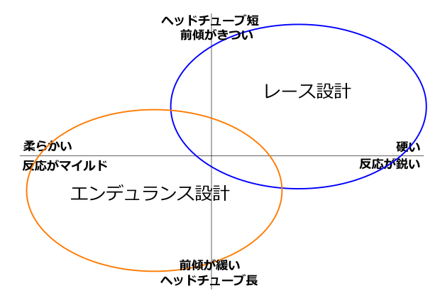 どうしてもインプレ記事に目が行きがちですが、まずはメーカーがどういうった意図で設計・作成しているか、「エンデュランス」なのか「カリカリのレース志向」なのか?ということが大切ですね。