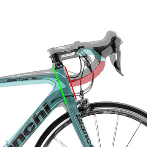 ヘッドチューブの長短はこういった明らかな目に見える違いがわかる、ハンドルの位置が低く遠くなるということです。