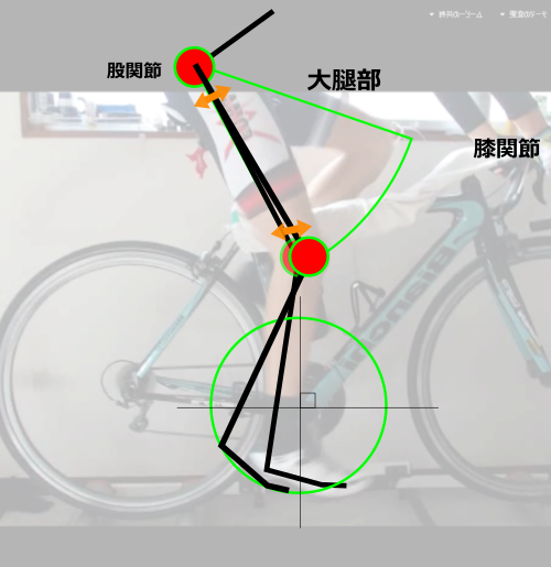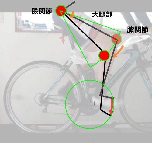 上支点が少しロードバイクの乗車姿勢よりも前にずれているからです。(上支点の回転)