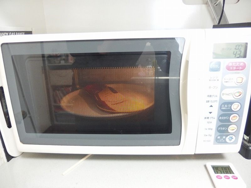 予熱が終わったら素早くぶち込み1分30秒加熱です。