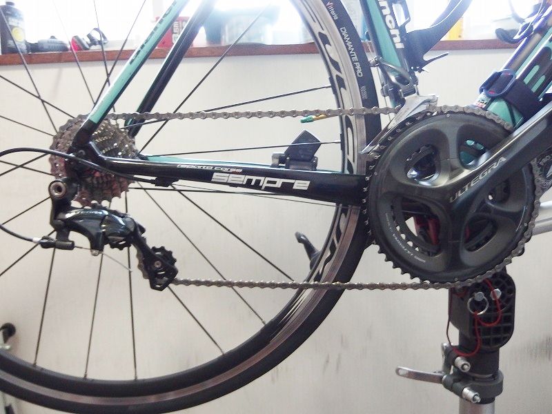 チェーンリングの”ULTEGRA”の文字がこの位置にくるようにします。