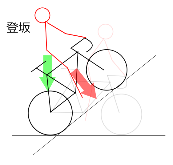 激坂になるとどうなるのか?というところですがが、ものすごく極端な図です。