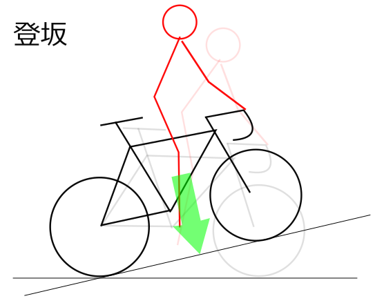 平地と同じ踏み方では効率が悪くなりそうです。