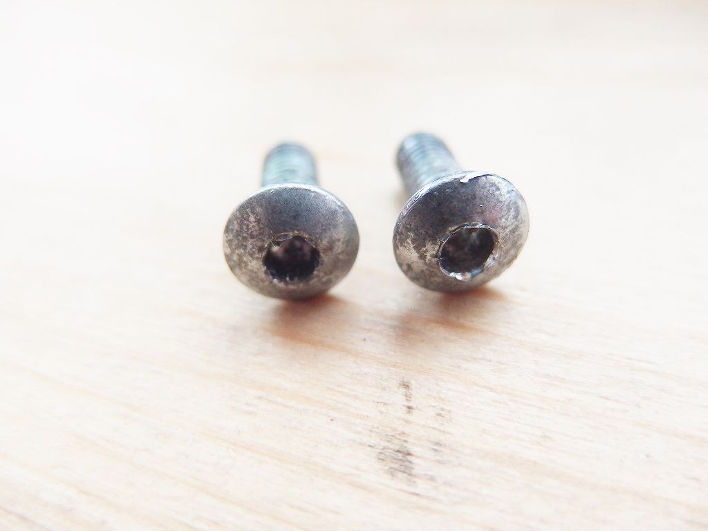 そこまで大変ではないのですが、こういった低頭皿ボルトタイプでボトルケージのように奥まったところのものはネジザウルスのようなものは入りませんし、場合によってはかなり苦労することもあります。
