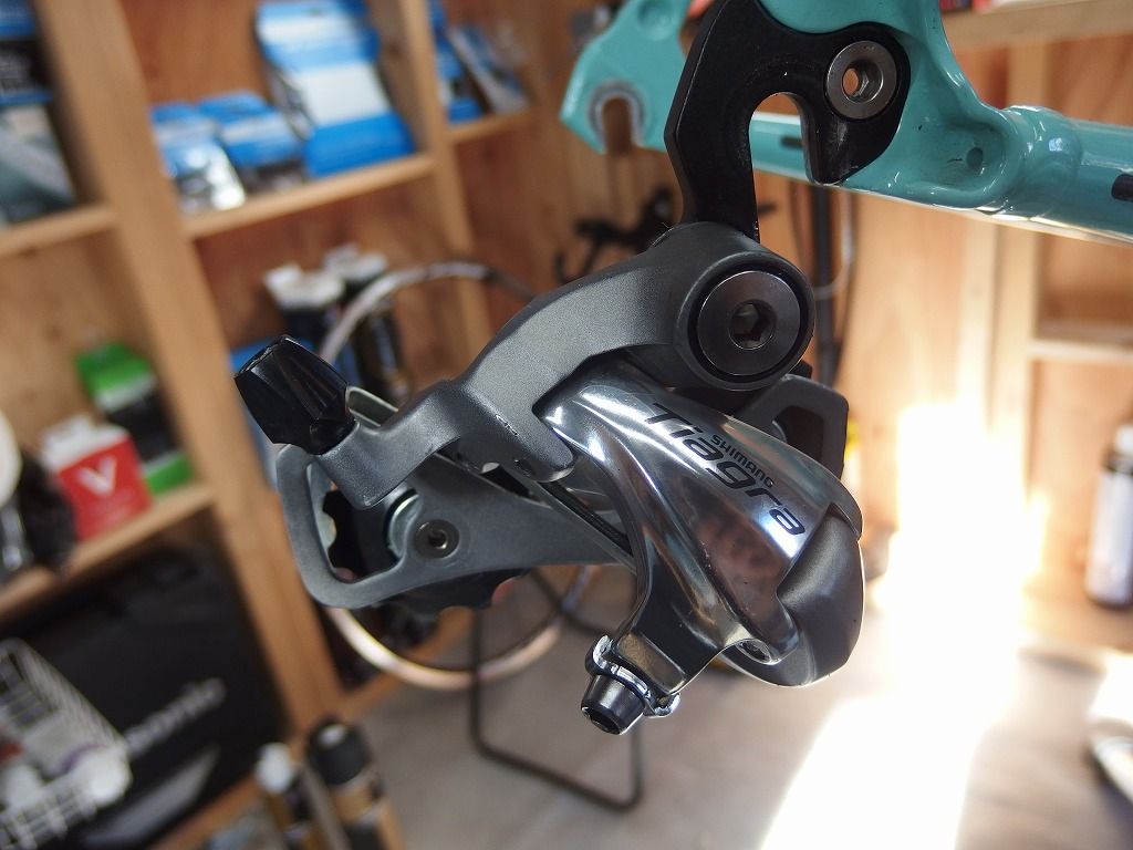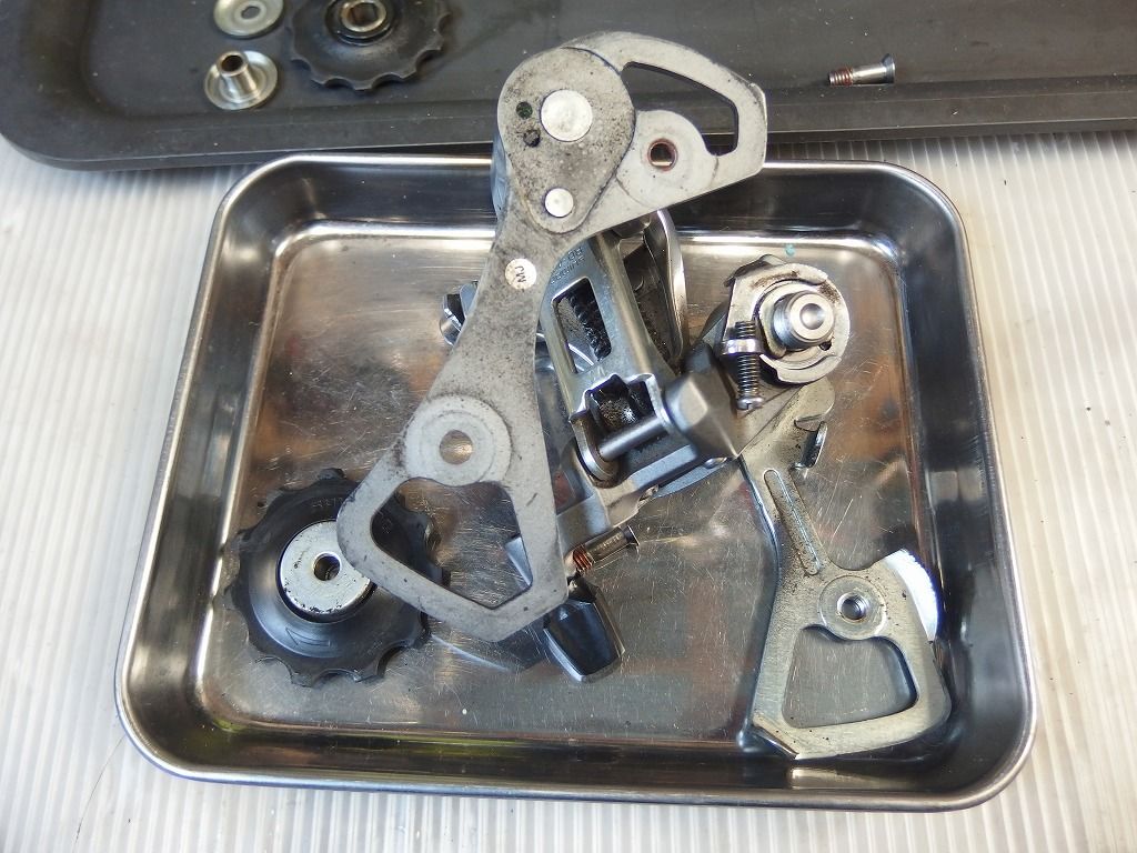 今回はチェーンはまだ使えそうだったのでRDのみ取り外しFDは取り付けまま清掃、注油ということで費用を節約です。