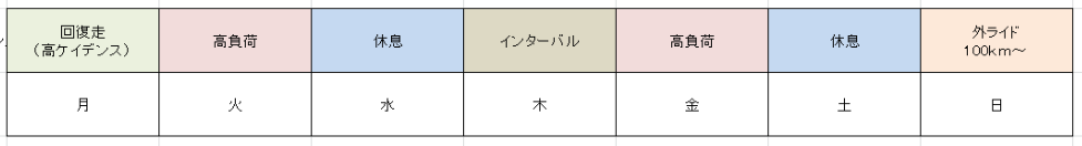 これらのトレーニングを1週間~2週間とかの期間で振り分けていくといいと思います。