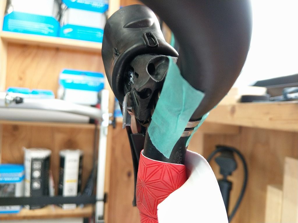 バンドを既存のものを使用することでバーテープを根本まで剥がさないで交換するという手抜き作業です。(´∀`;)