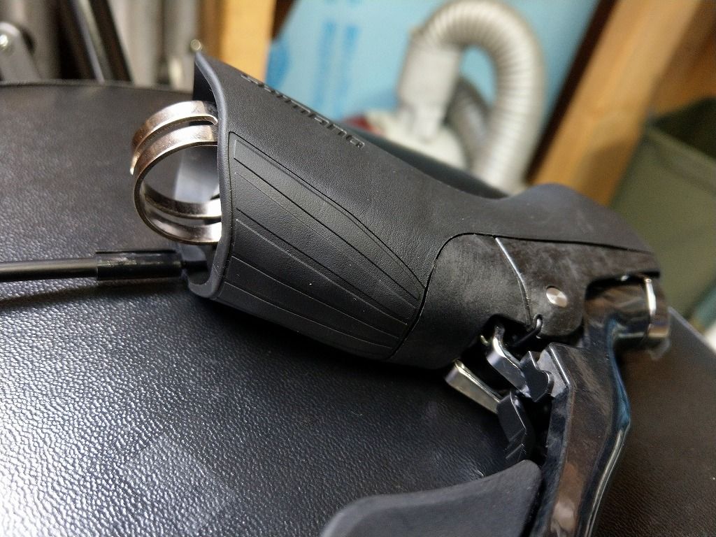 よ~くみると新型R8000は9000のDURAのレバーのようにブラケットフード上部と下部に溝が切ってあります。6800はぬるっとしていたのがR8000で進化したようです。
