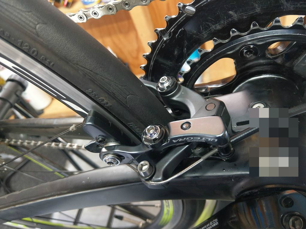 BB周りのリアブレーキは汚れの影響を受けやすく、動きが悪くなりがちなのでこちらもバラします。