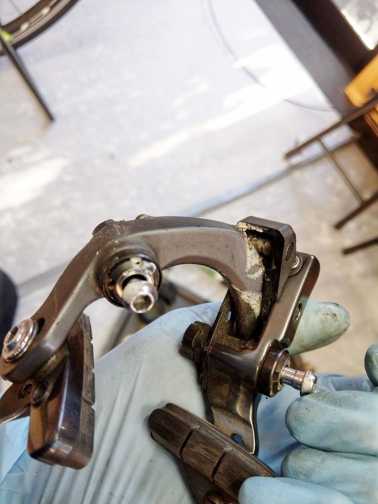 このジャリジャリ感がリアブレーキのタッチの悪さに拍車をかけているようです。これだけ可動部もジャリジャリであればジャリジャリしますネ。