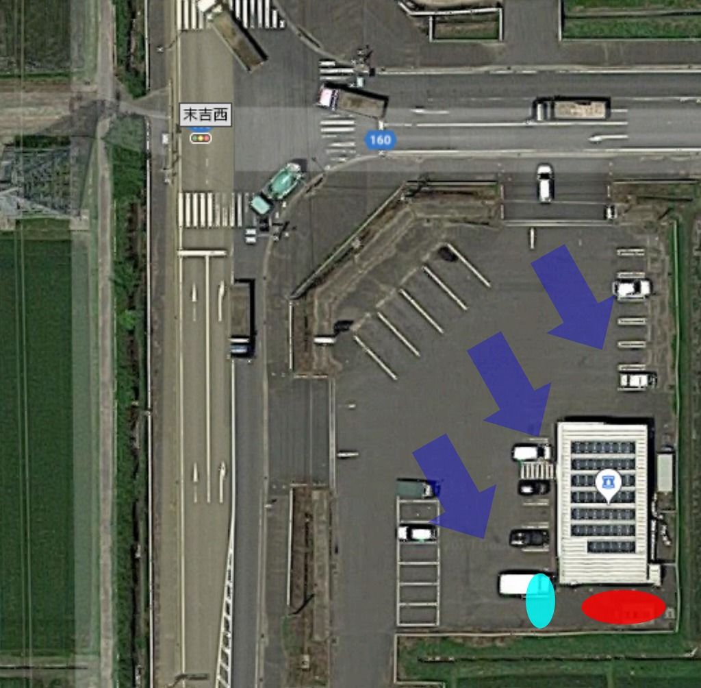 以前休憩したコンビニですが、我々よりも遥かに厚着のバイカーさんたちは水色のエリアで休憩中でしたが、まさにガクブル状態でした。風向きを考えれば赤いエリアが一番暖かいです。
