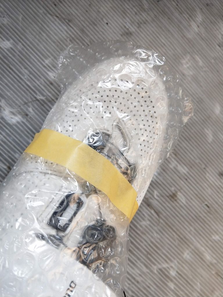 ②プチプチをシューズに巻く(特に先端付近はきれいに)