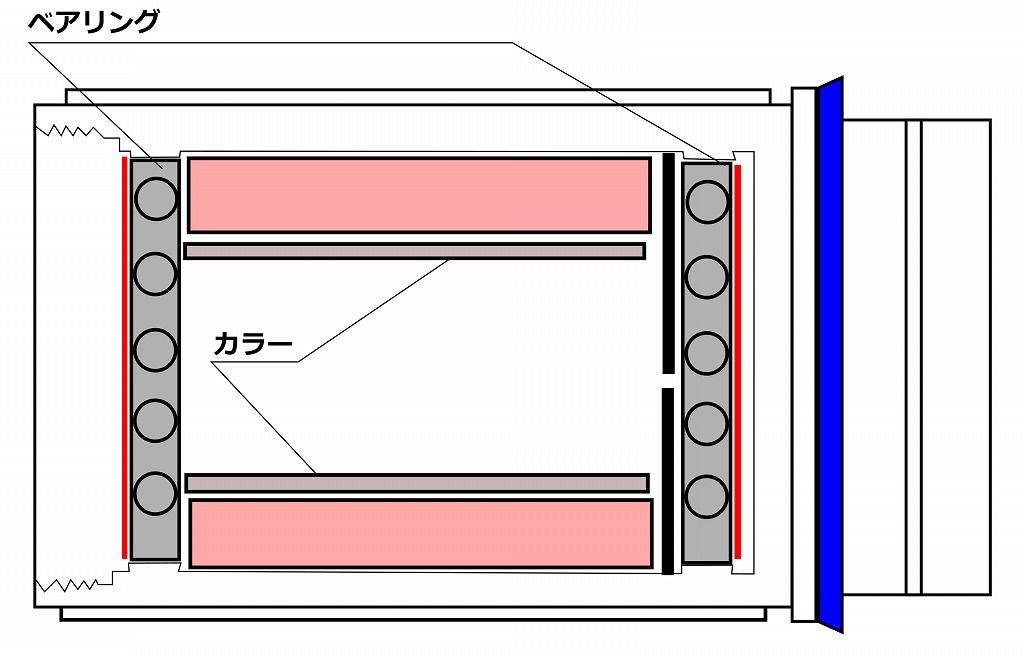 構造的にはフリーボディ内部には2つのベアリングがあります、
