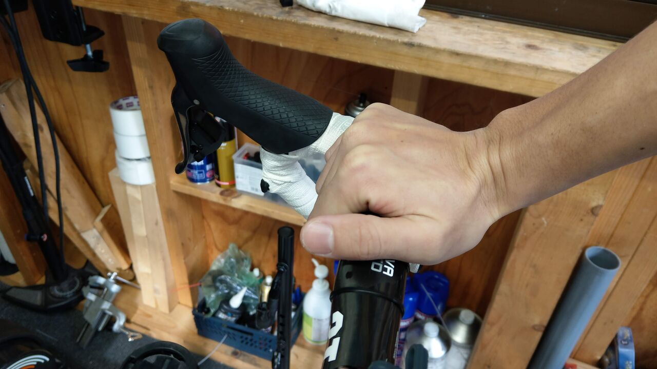 昨今ではエアロハンドルの影響でバーテープをまかない場合もあり、滑りやすいということもあります。