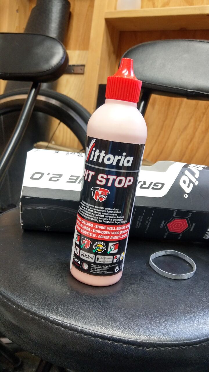 シーラントは純正品推奨なのでVittoriaのピットストップを使用します。