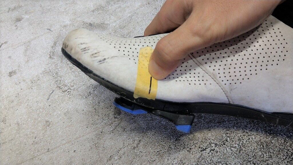 ④クリートのセンターをマーキングする
