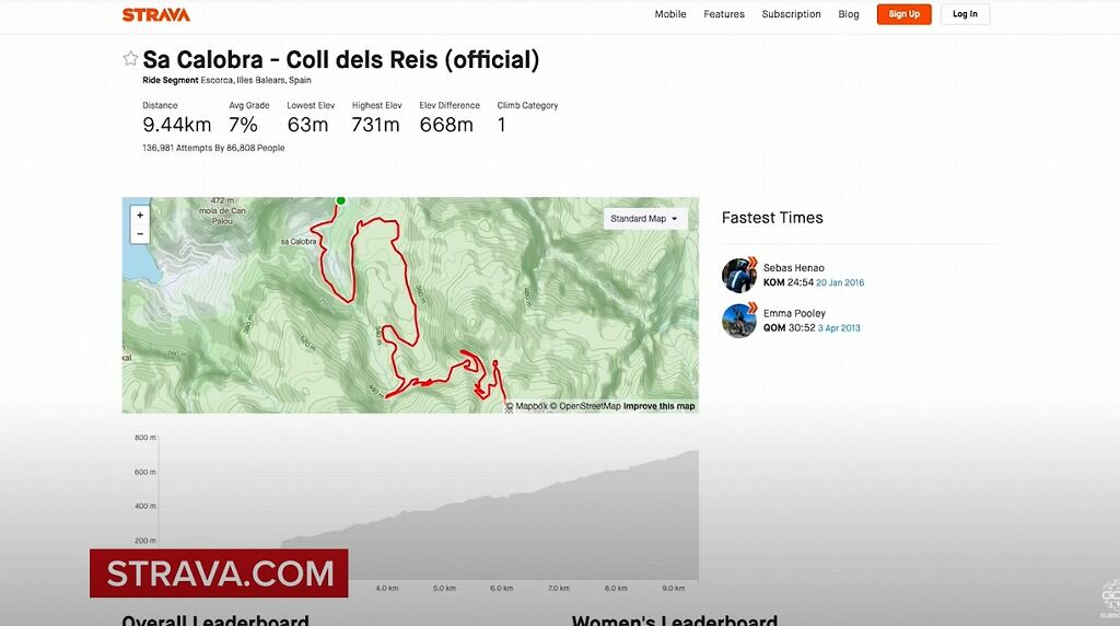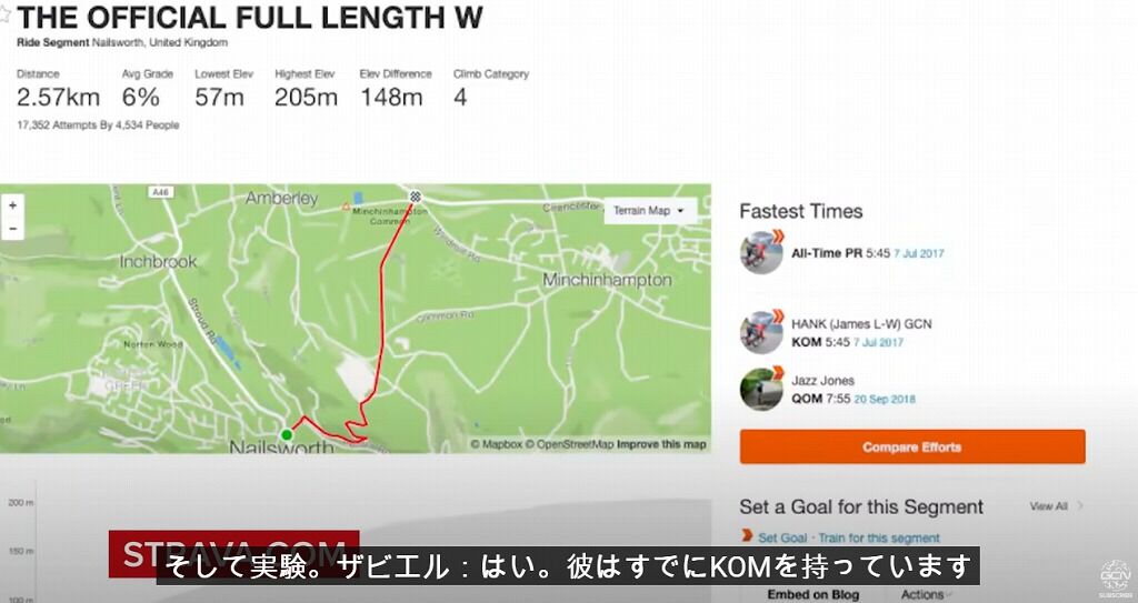Strava上に同区間が発見できませんでしたので、ゴールとスタートが逆向きの同区間の情報です。