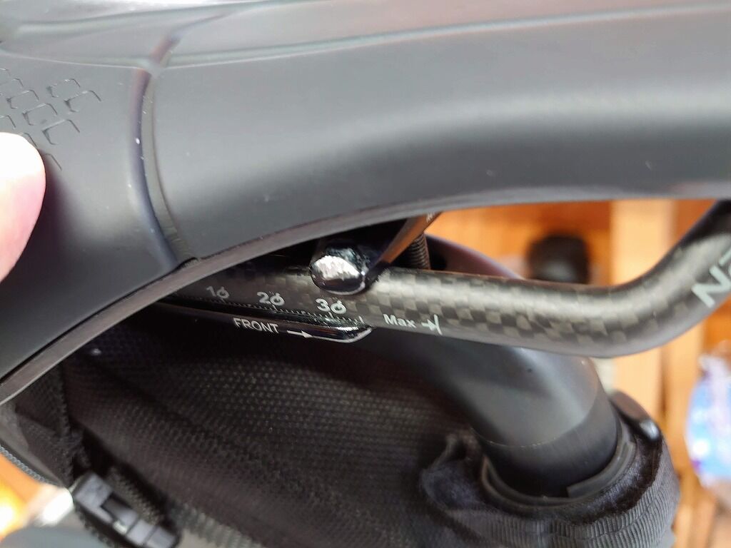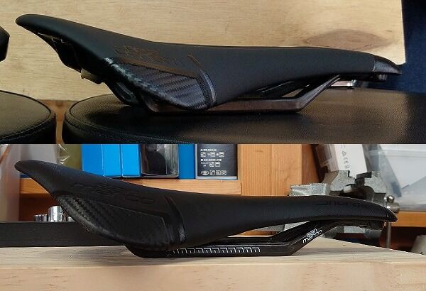 ヘタってくることでベースのたわみが増えると、センター部分が垂れ下がり、相対的にサドルのノーズ部が持ち上がっているような状態になります。