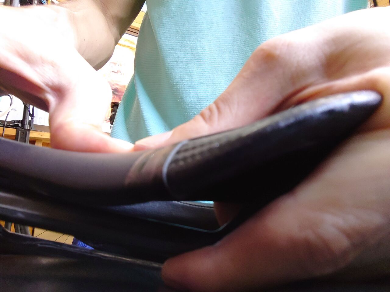 ズルっと表面素材は破れ、サドル側のベースが削れています。