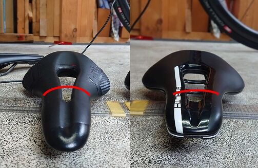 どちらも画像上は拡大等の影響がありますが、サドル幅はほぼ同じものです。