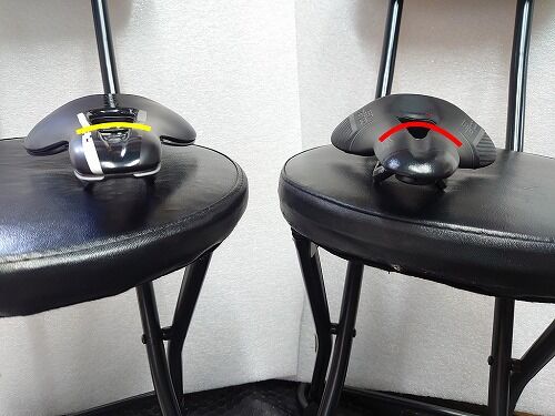 フラットのほうが座る位置を前後に移動・調整できそうなイメージはあるのですが、個人的な感想とすると、どちらも坐骨幅に合ったスイートスポットは一点しかありません。