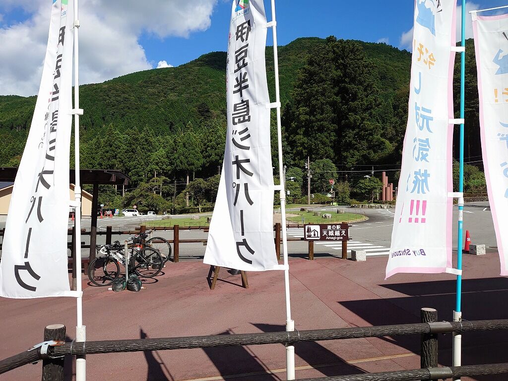伊豆はサイクリストに優しく、サイクルラックも多く、道路には自転車通行表示が多くありますが、道は広くありません。