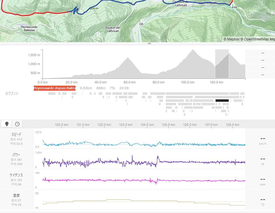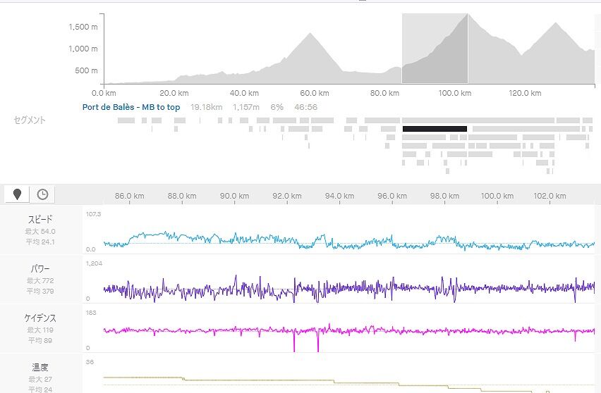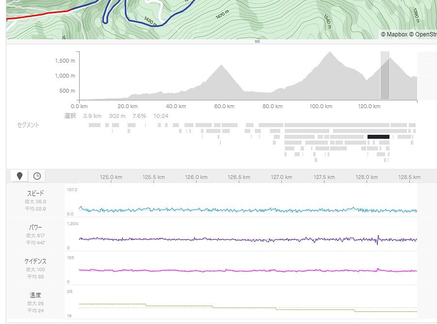 上りを中心にStravaのセグメント区間で見ます。