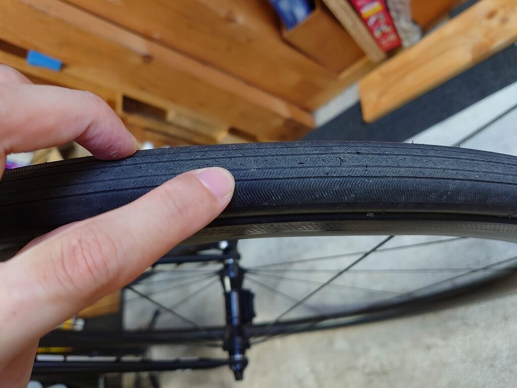 摩耗的にはまだ使いたい状態ですが、ひび割れをみるともうぼちぼち大往生といったところでしょうか。