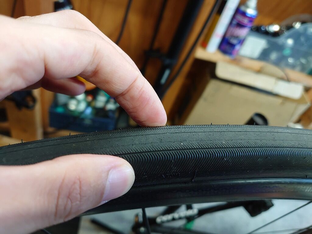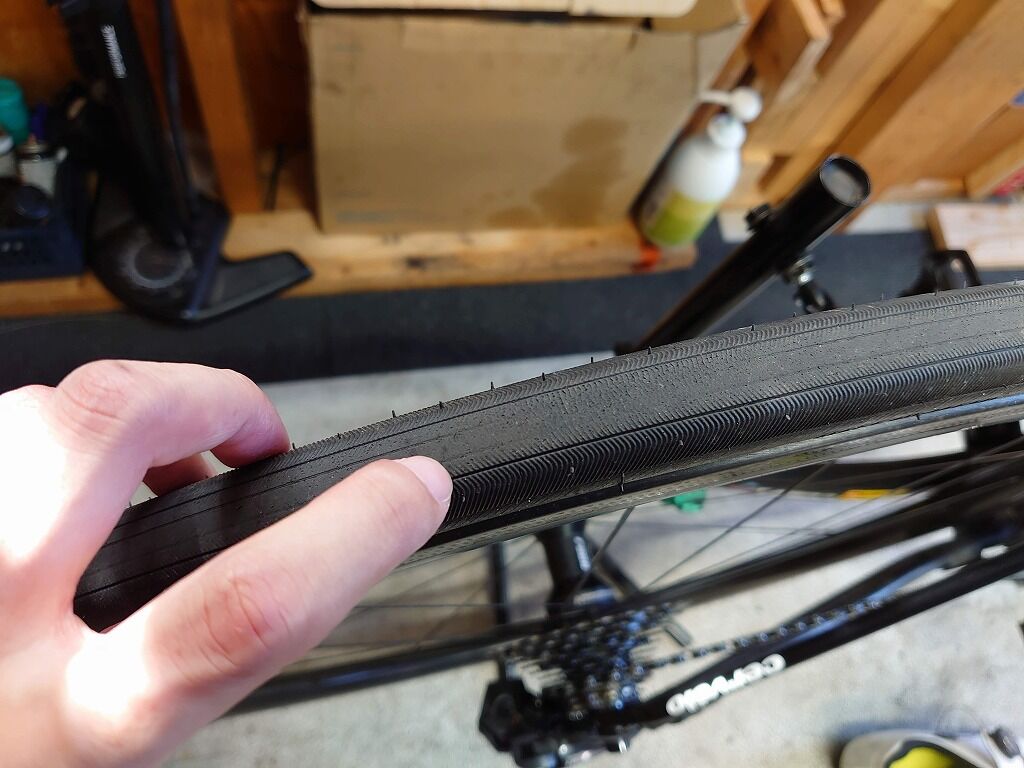 しかしカット系のパンクに関してはというと、タイヤの厚み次第というところがあるのだと考えております。クリンチャーの場合はタイヤ+チューブの厚み(チューブの強度)によって穴が空くか空かないか、チューブレスはタイヤの厚み+シーラントの性能です。(切れたとしてもシーラントで止まれば走れます。)