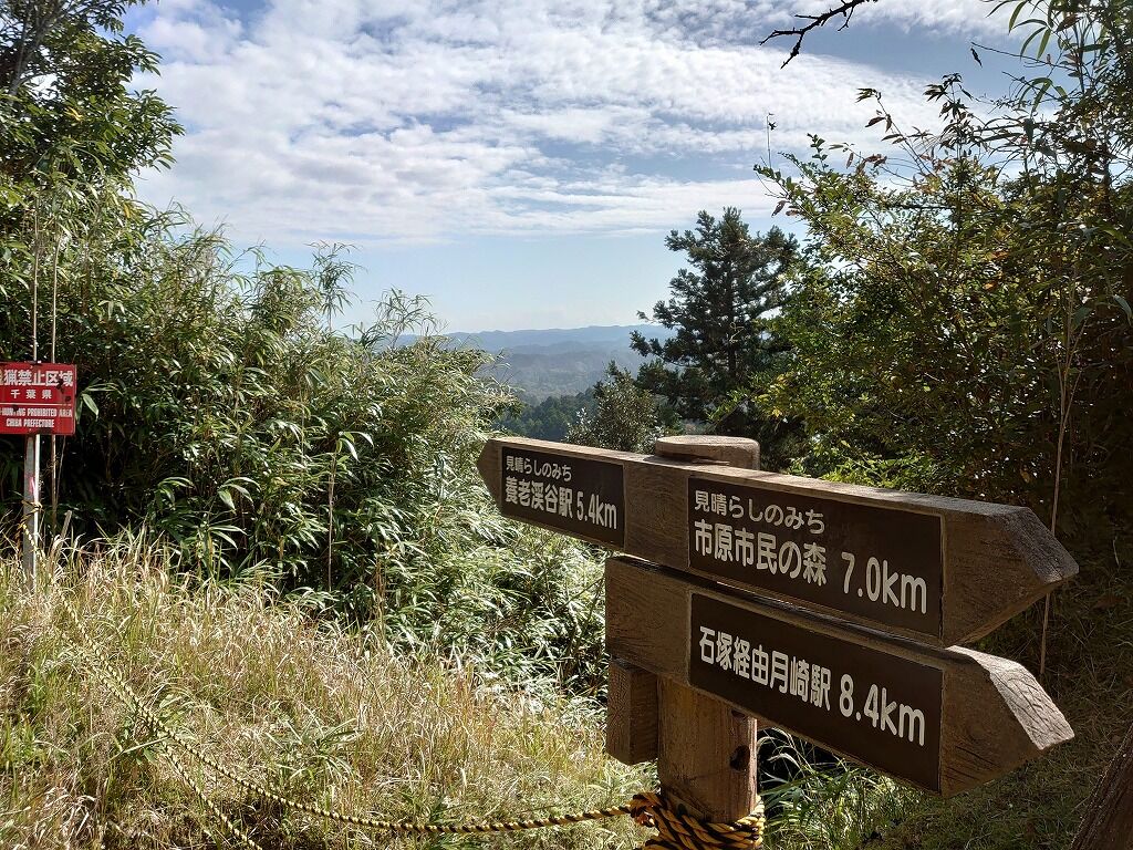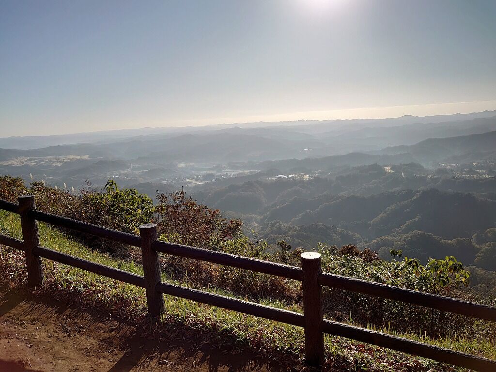 高宕山などの上総丘陵が幾重にも重なる山並みを一望できます。これらを総じて「九十九谷」と呼び、大町桂月は「天下の奇観」と激賞しています。ということが看板に書いてありました。