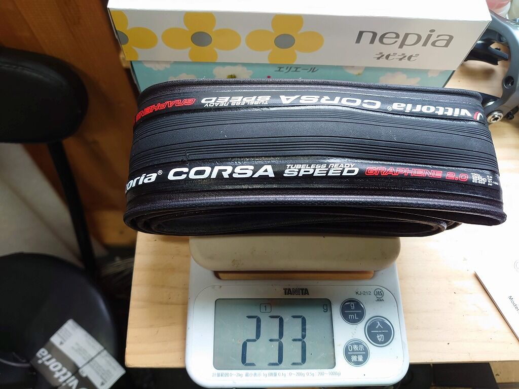 つまりコルサスピードG2.0は、重量的にはチューブレスレディのタイヤとしては仏契に軽いなんてことはなく、普通ぐらいの重量と言うことです。