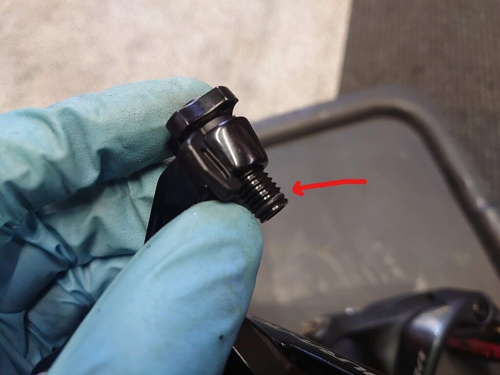 こちらは正常なOリングがついている状態です。アジャストボルトはこの状態だとポロッと外れずらいですが、Oリングがない場合にはポロッと取れてしまいますので、なくさないように要注意です。