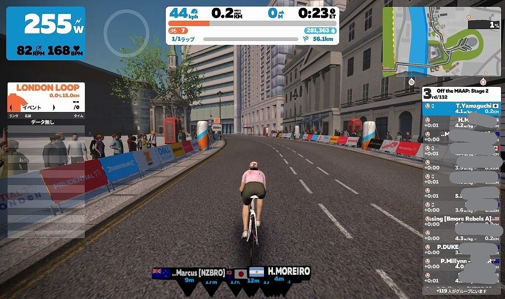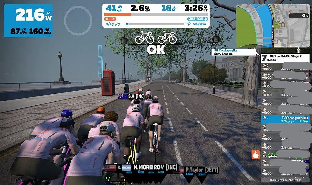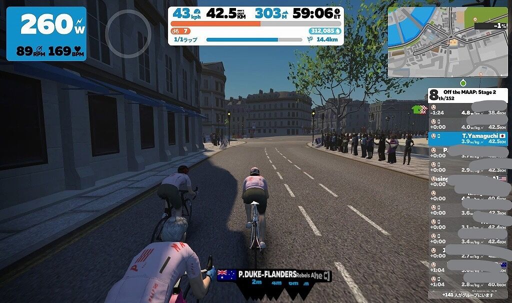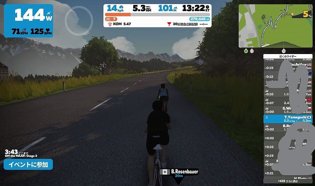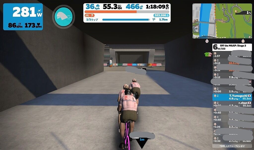 甘く見ていたところがあったと思いますが、最初は300W5倍ぐらい出さないと先頭の集団にはいられないぐらいでした。