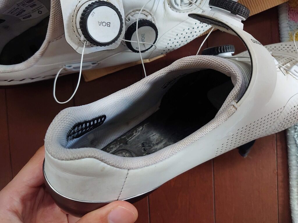シューズのソール(靴底)はカーボンなので、問題有りませんがアッパー(足の甲の大部分)です。