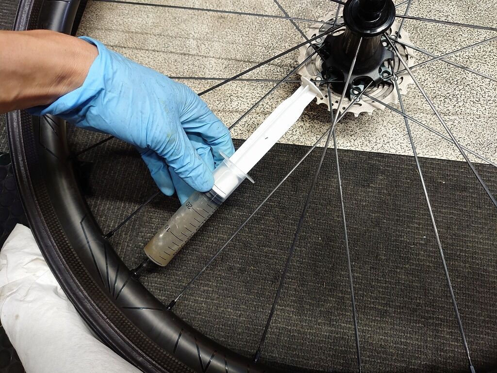 ビードのロックを確認したらシーラントを入れます。