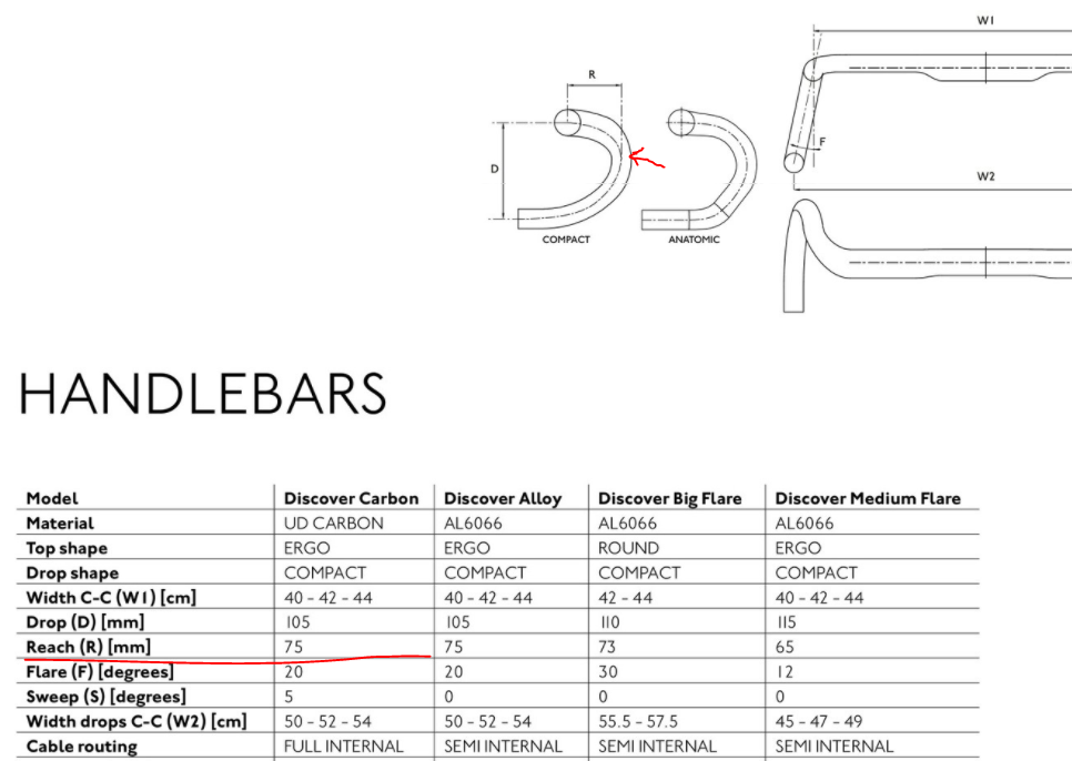 ですので一般的なハンドルと合わせると”Stem/HB Reach”から12mmを引いた数値になるのではないか、と言うお話です。