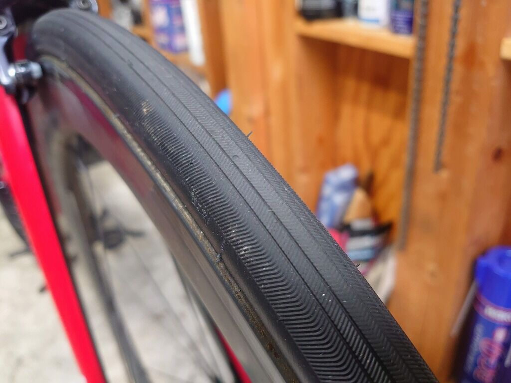 S-Lightといえば2年前の発売して間もない頃、耐パンク性能はお世辞にも高いとも言えないぐらいのパンクを経験してきました。特に雨上がりのウエット路面でサクサク穴が空いていたような記憶があります。