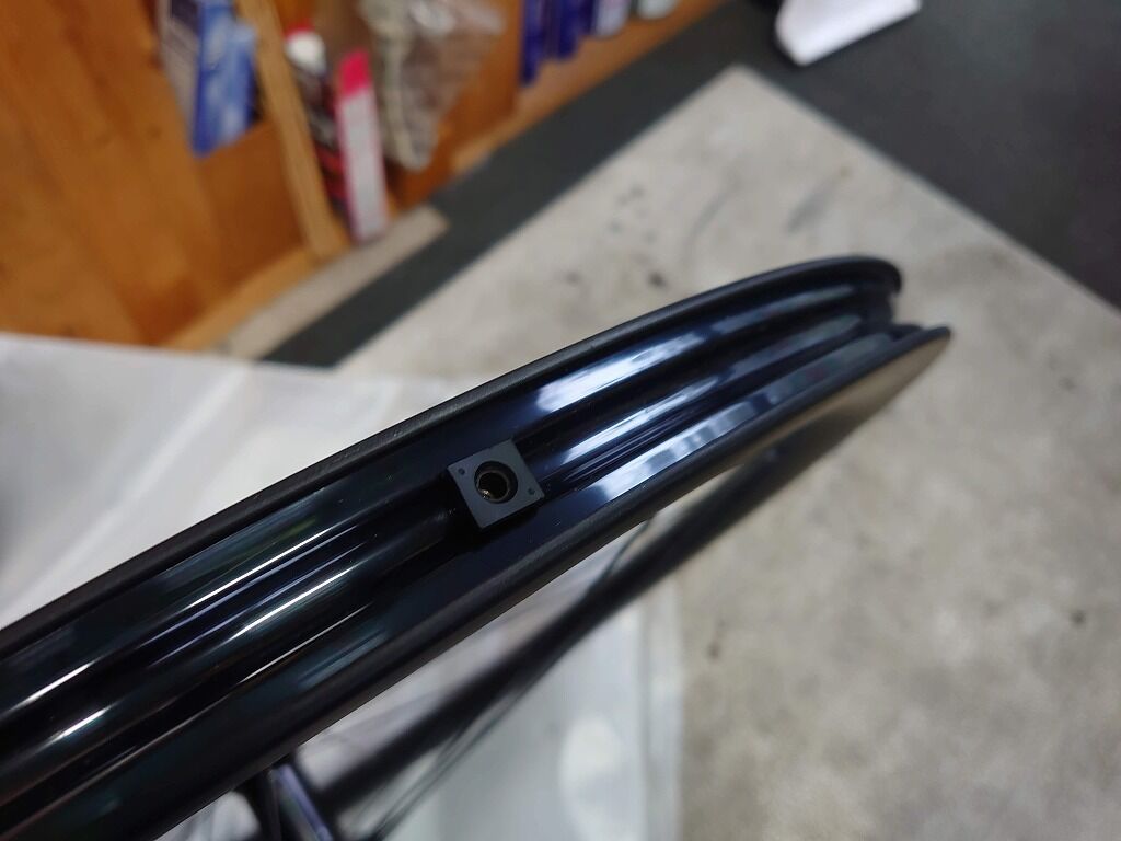 エア抜き?リム内にリークしたエアの影響でリムの破損を防ぐため?もしくは水抜き用?と思しき穴が空いております。最近のリムはこの穴があるものをよく見ます。