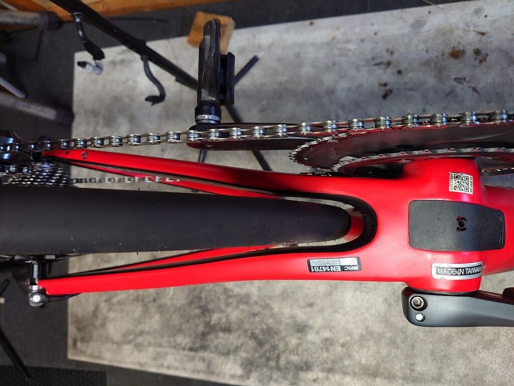 BMC SLRのフレーム的には28mmまで許容(28cではなくタイヤ幅28mmまで、です。)という設計というのがメーカーのお話でした。