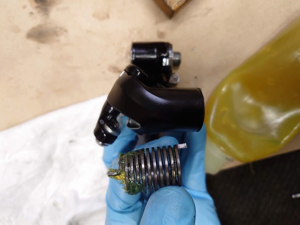 アジャストスクリューはグリスを、内部にはバネを入れる構造です。